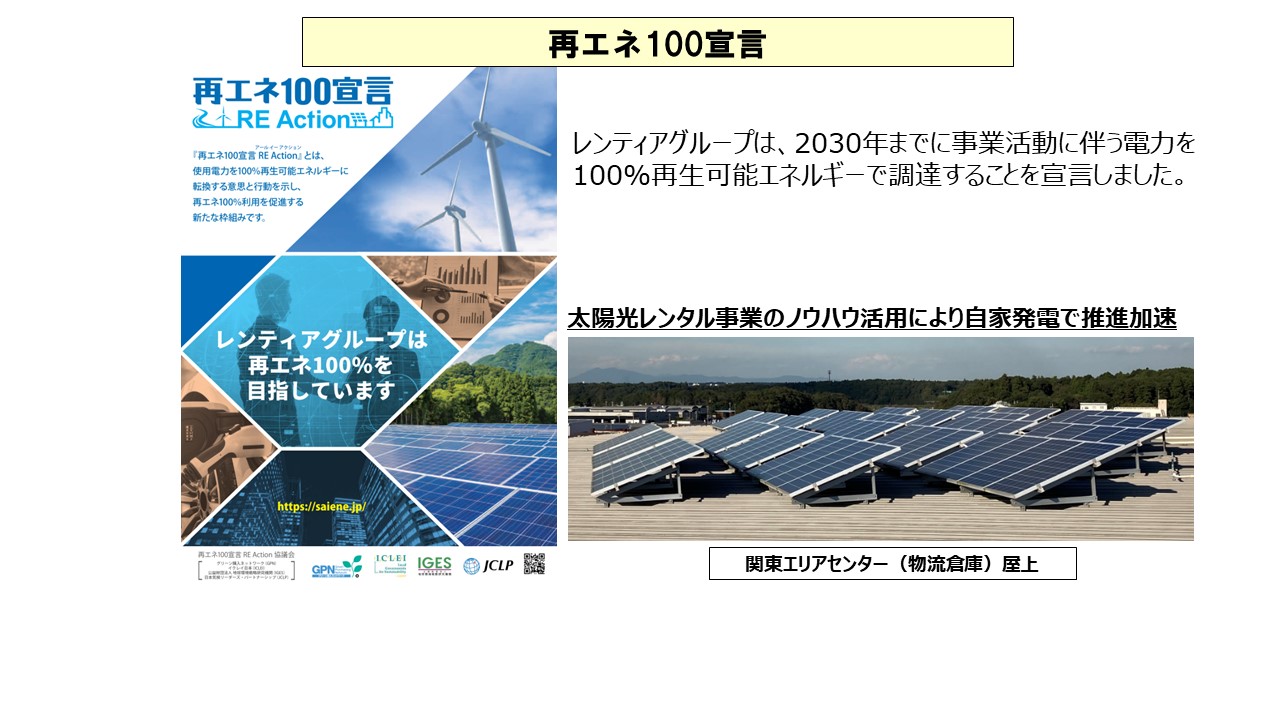 関東圏でのレンタル商品を担う物流拠点 2020年より使用する電気はすべて再エネ由来のエネルギーへ移行